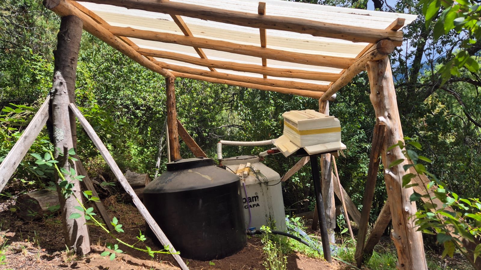 💧 Tanques de agua exteriores (1.100 y 750 litros) y sistema de cámara séptica.